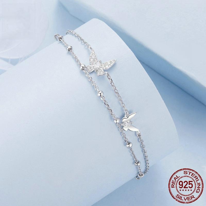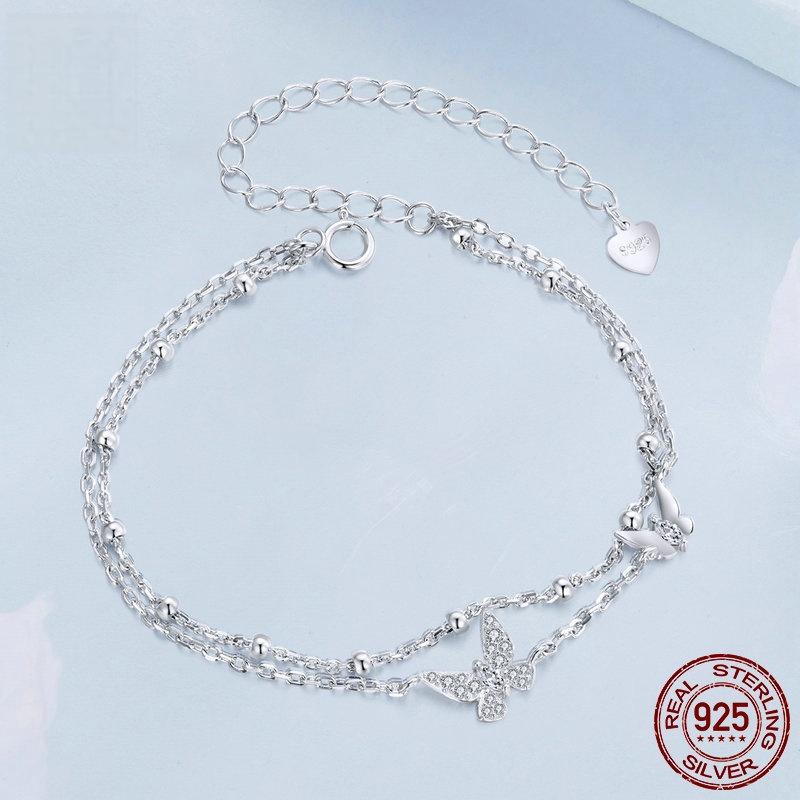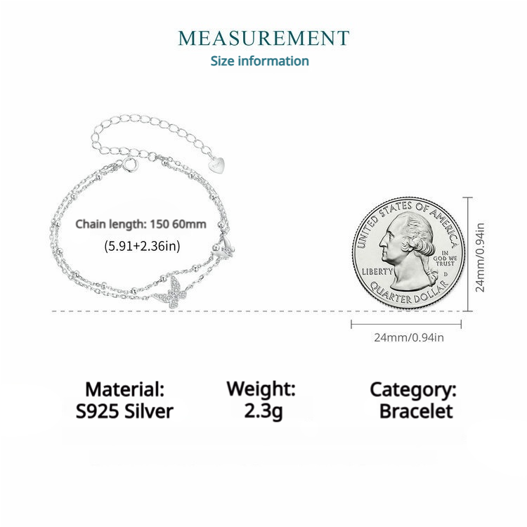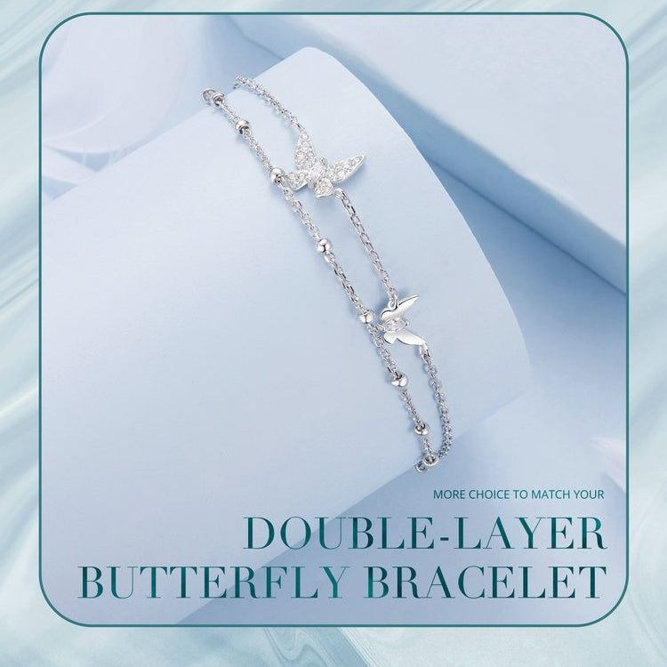 Dual-Layer Design - Intertwined chains with delicate butterfly charms (total length 5.9"+2.3")