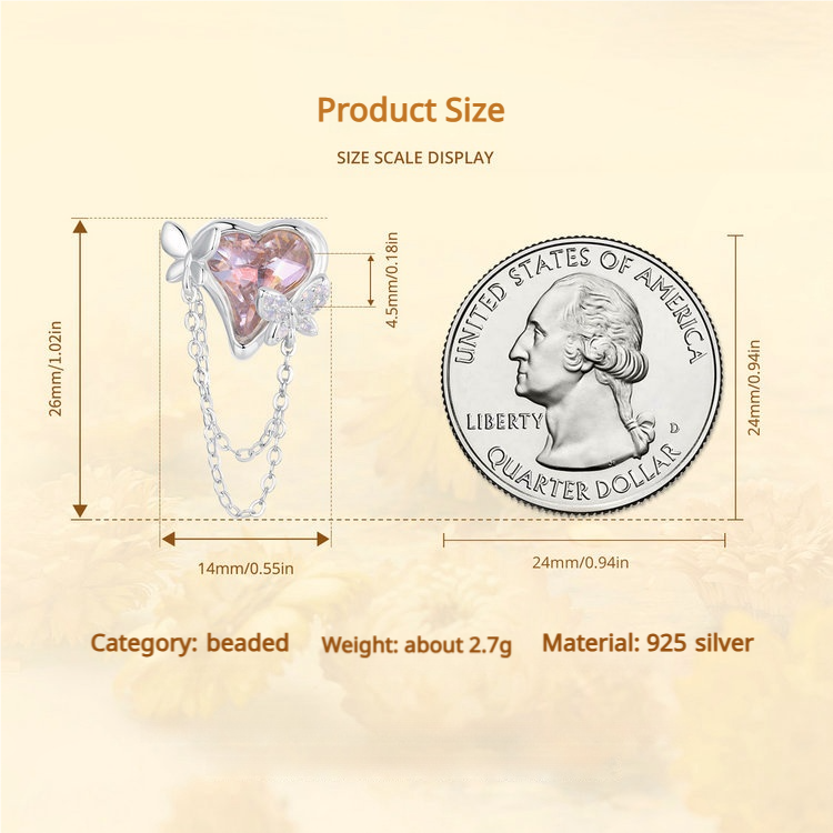 Symbolic Butterfly Charm - 26x14mm silver pendant featuring delicate wing textures (2.7g total weight)
